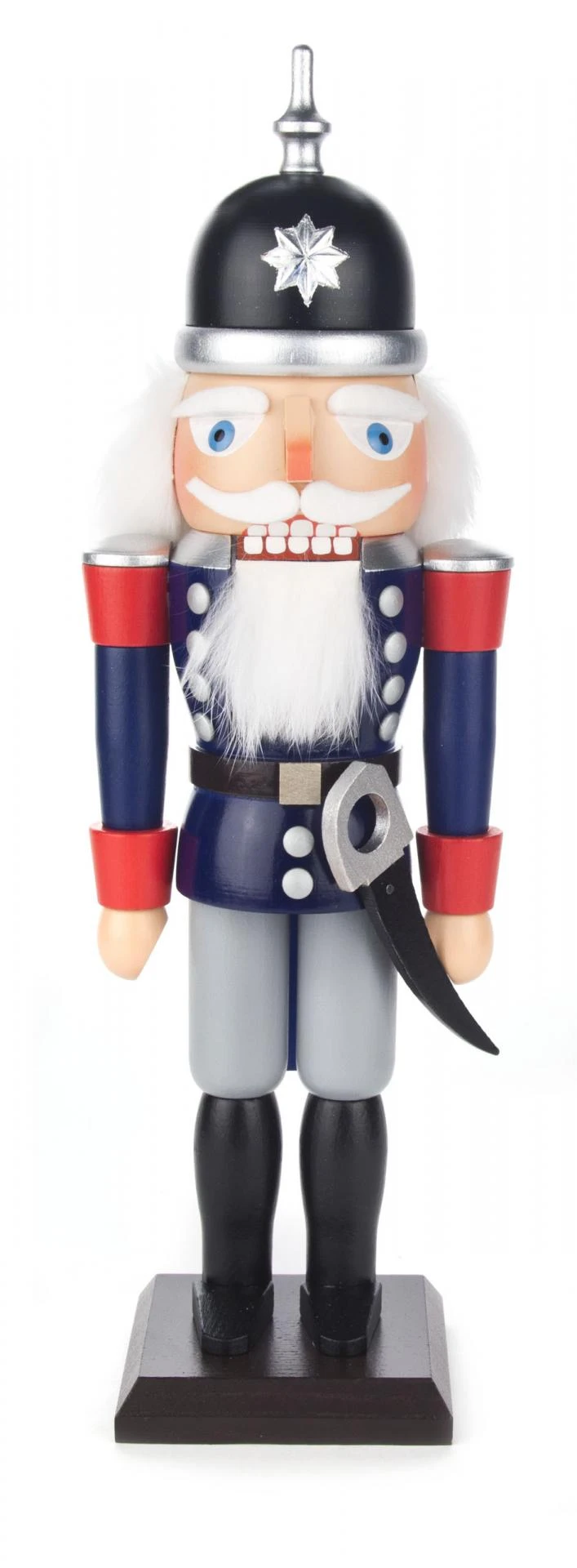 Authentic German Nutcracker. Hand Painted with Red, Blue & Black Accents.