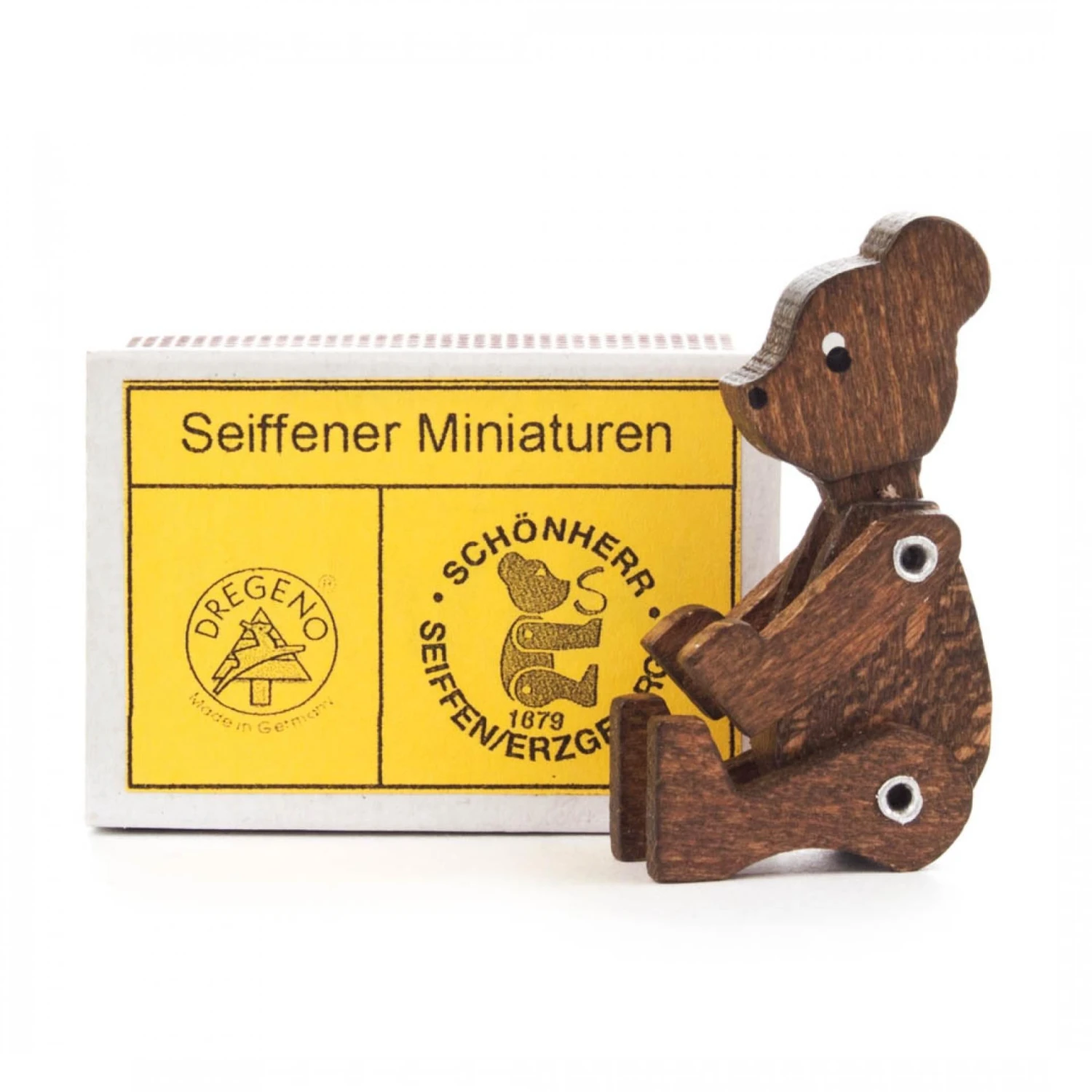 These popular miniatures in the Matchbox are made in Seiffen since 1920. Earlier, the matchbox was intended more as a packaging for the miniatures. Later, furnishings and figures were placed in the boxes themselves.Â