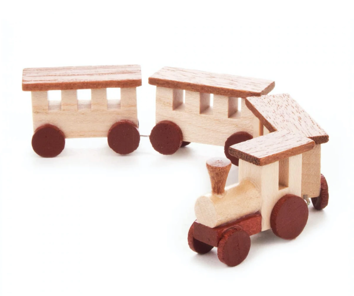 Hand Crafted Miniature Wooden Passenger Train, Natural Finish.