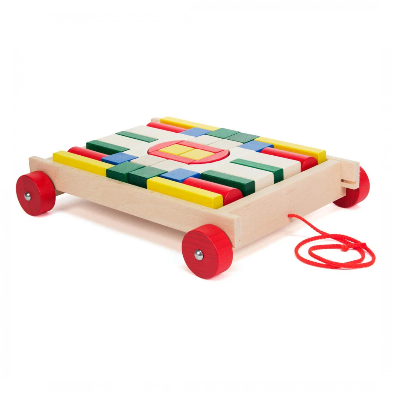 Wooden cart with wooden building blocks