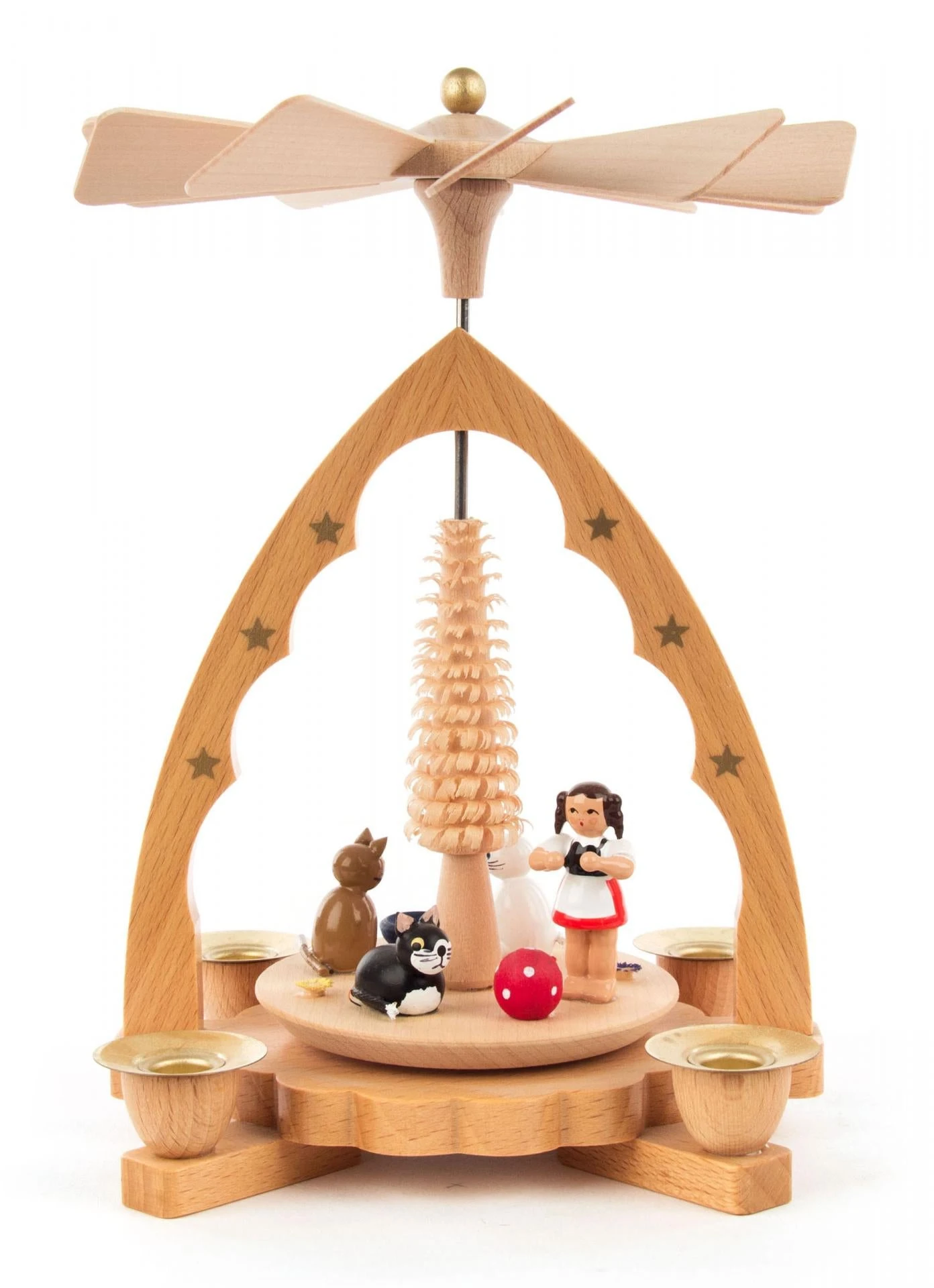 Wood German Pyramid with Girl and Cats