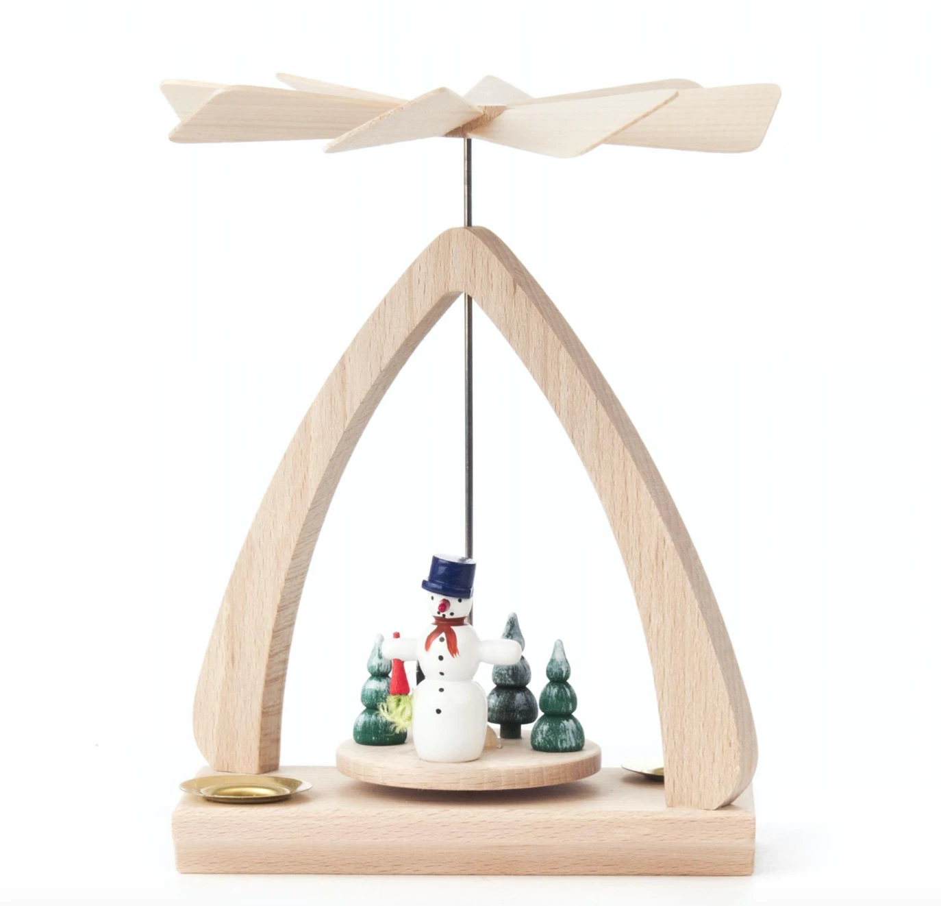 Wooden German Pyramid. When the candles are lit, the heat will rise causing the blades to spin. Uses 2 – 14mm Candles.