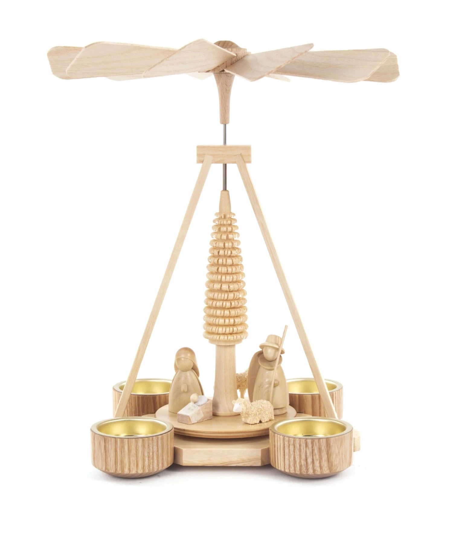 Wooden German Pyramid with Nativity Set, uses Tealights
