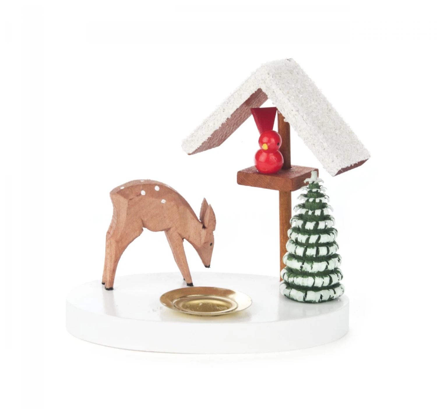 Authentic Wooden Candle Holder with Bird Feeder and Deer.