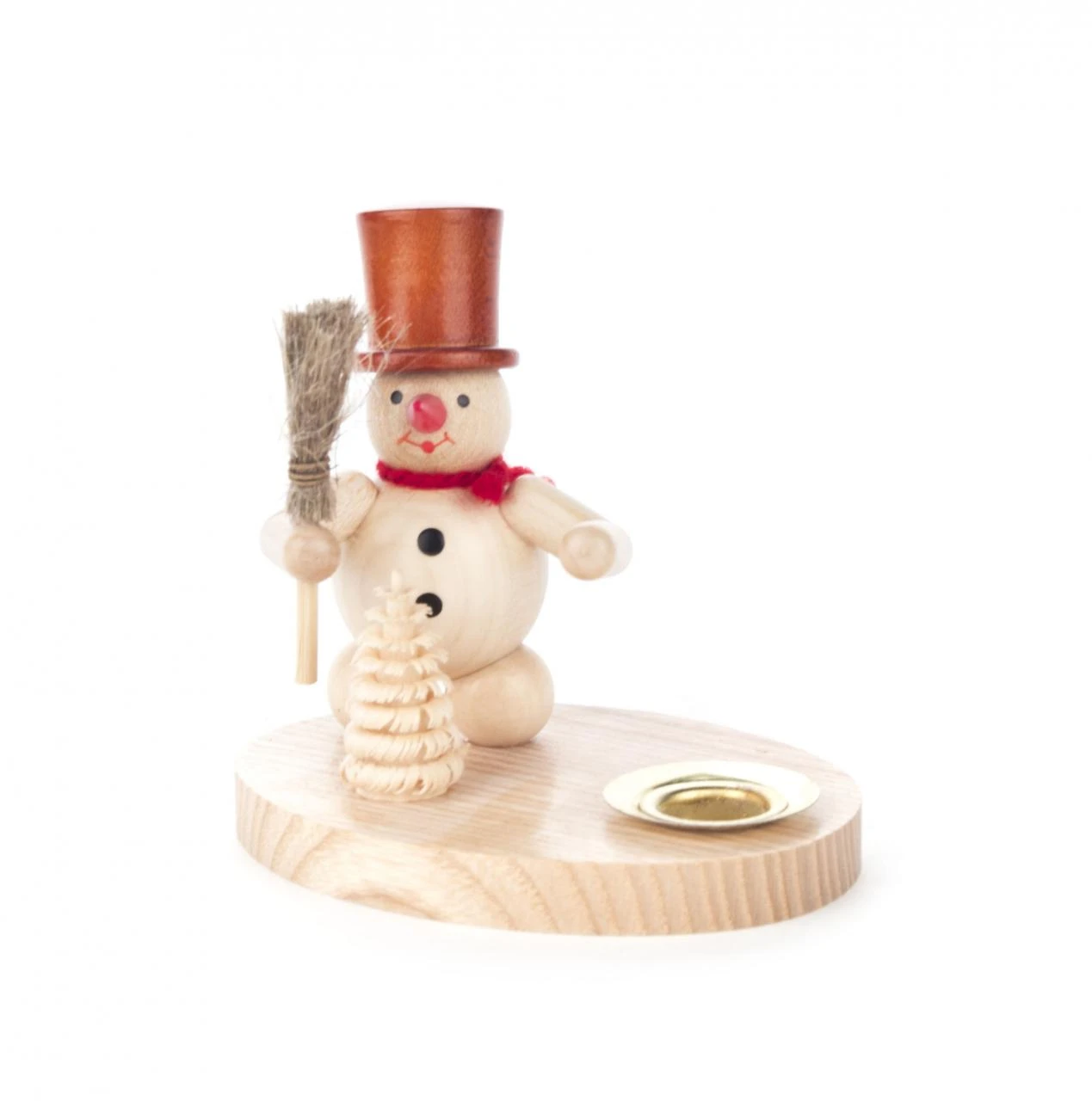 Authentic Wooden Candle Holder with Snowman & Tree.