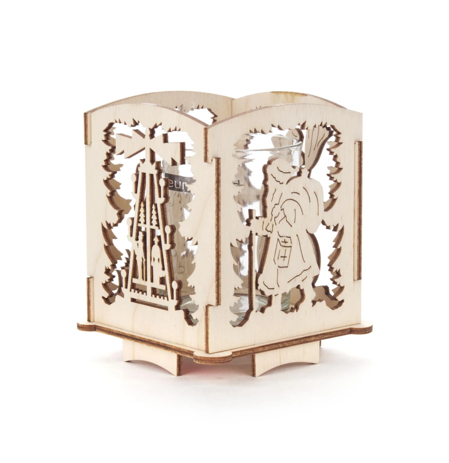 Authentic Wooden Tealight Holder with Santa & Pyramid