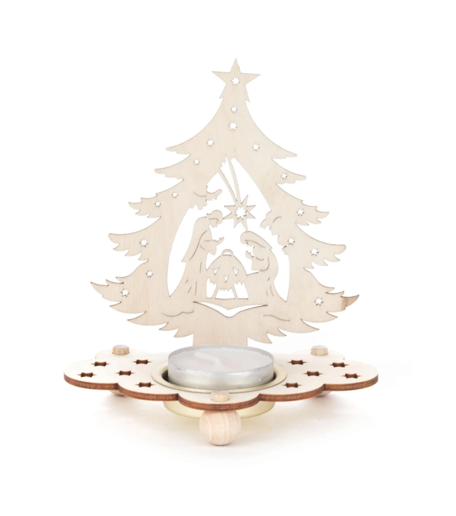 201/229 – Tealight Holder with Christmas Tree & Nativity Scene