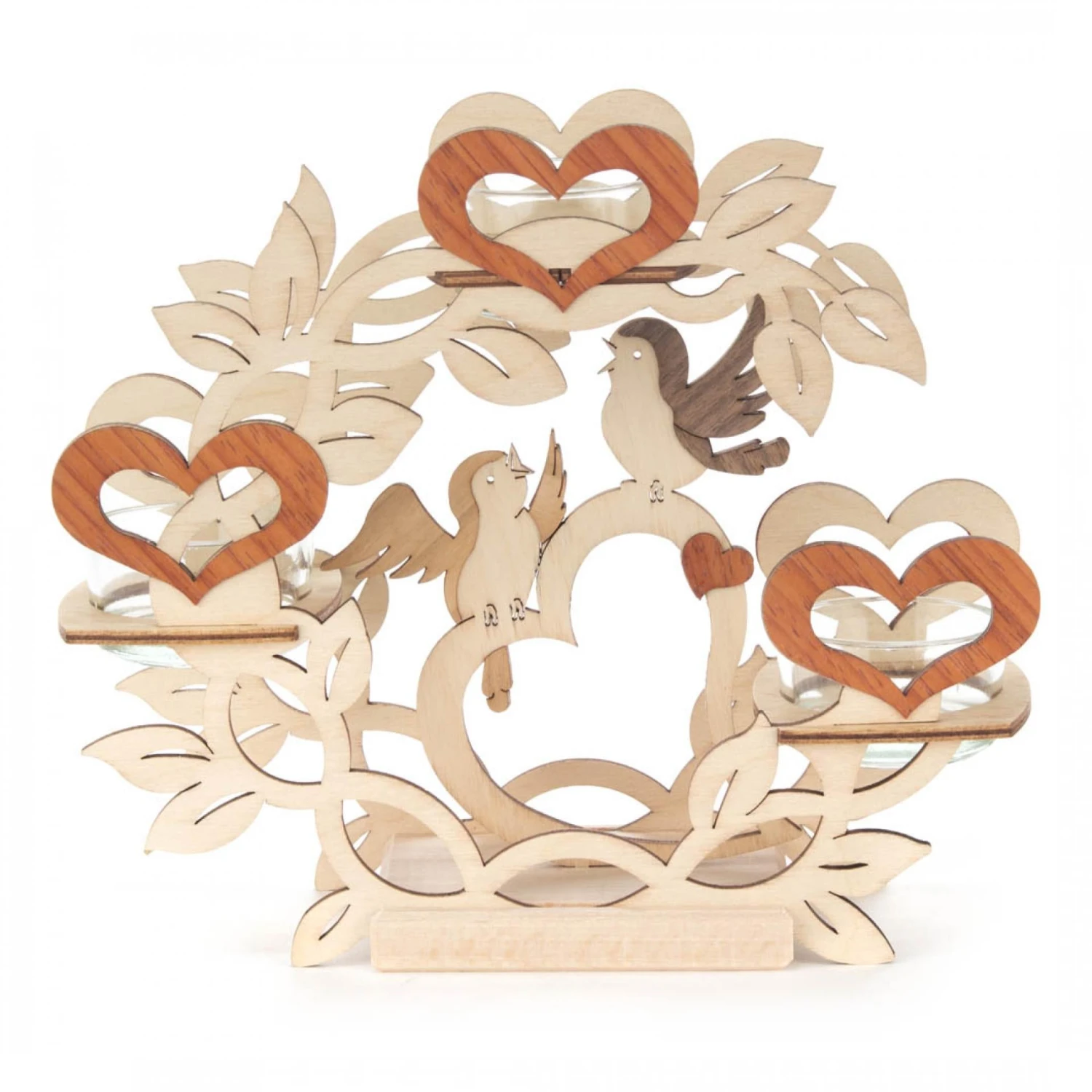 Authentic Wooden Tealight Holder with Snowman & Birds.