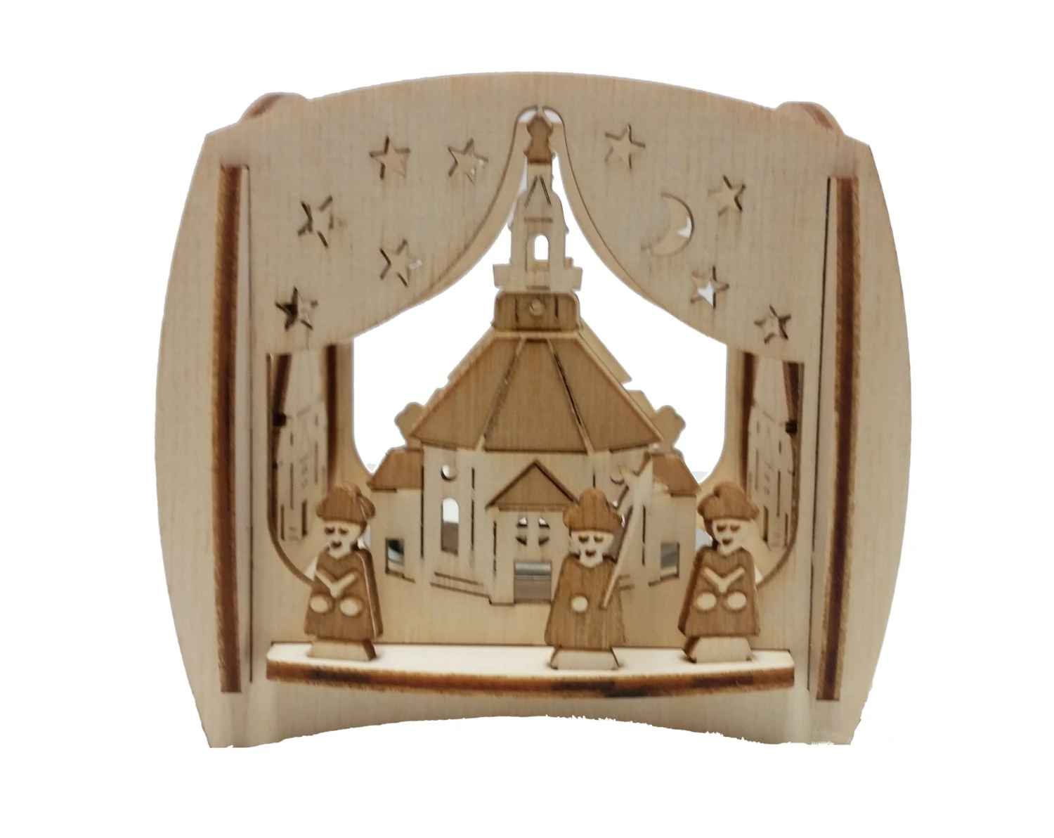 Authentic Wooden Tealight Holder with Snowman & Tree