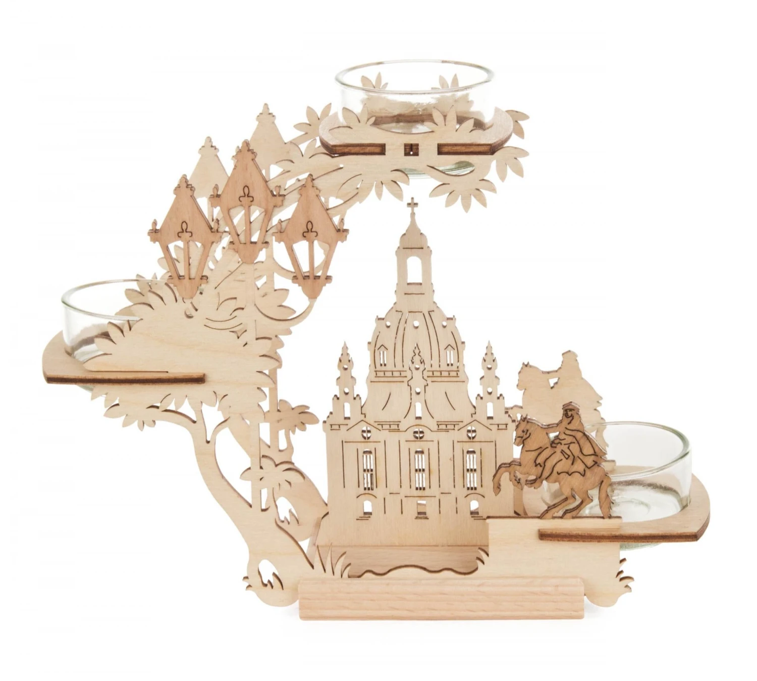 Authentic Wooden Candle Holder with Dresden Frauenkirche “Church of Our Lady”
