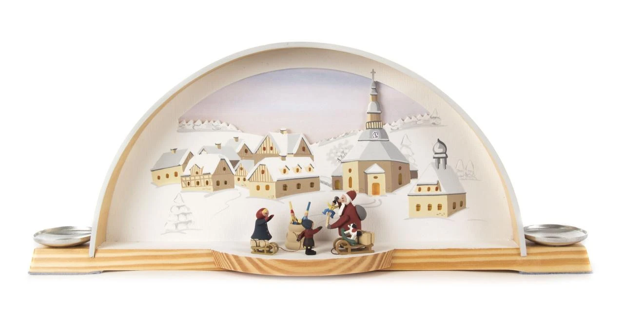 Wooden German Candle Arch with Seiffen Church with Electric Light