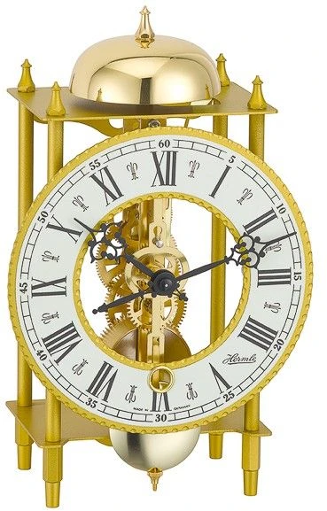 Features: Roman Numeral Dial. 8-Day Hermle Brass Movement with a Brass Finish Case, Bell, and Pendulum.Â