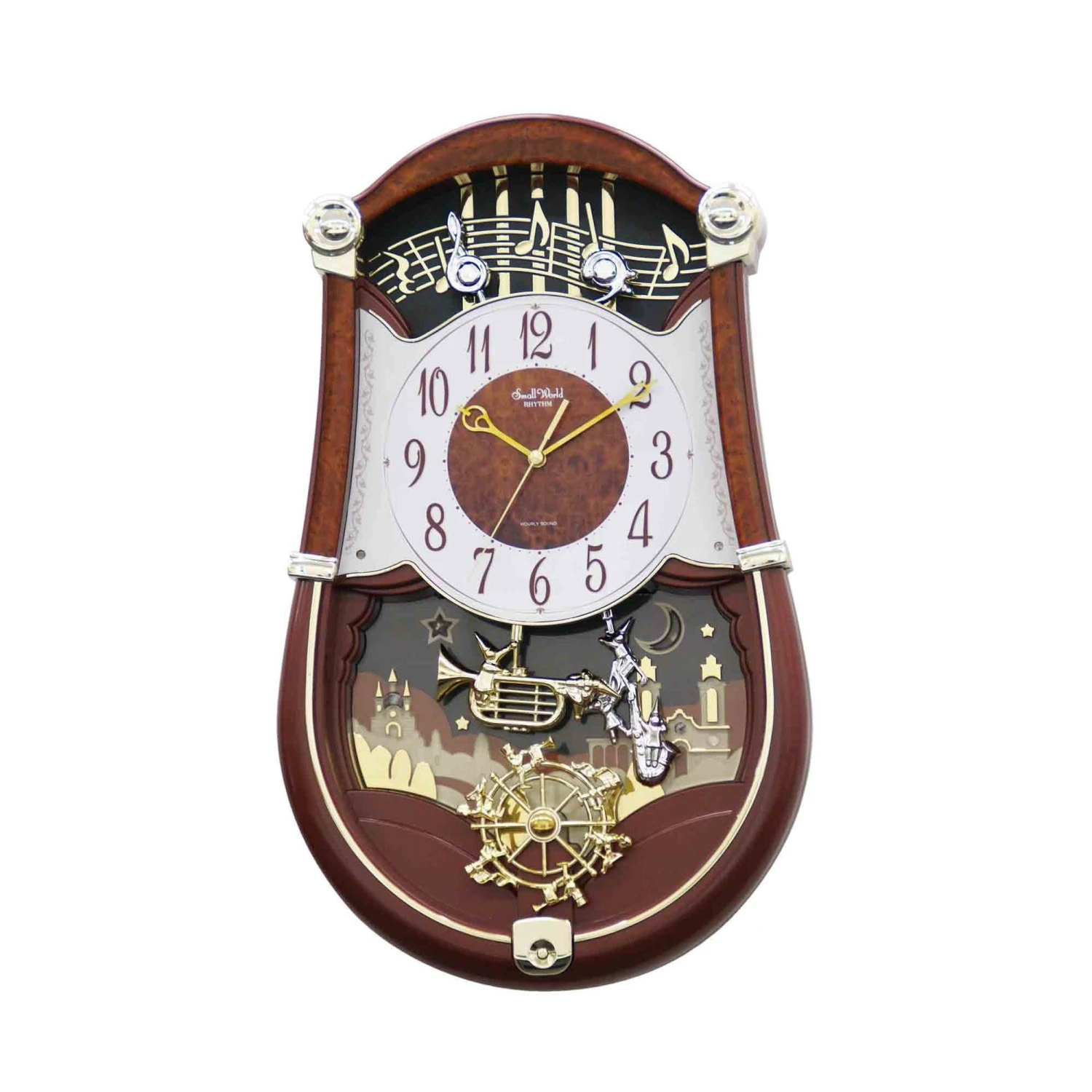The Concerto Entertainer II Â is orchestrated with an extraordinary ensemble of instruments and musical notes. The figures on the pendulum swing to 1 of 30 melodies while the wheel at the bottom rotates. The LED lights are synchronized to the music every hour.