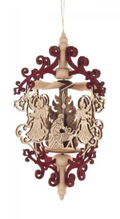 199/229/82 – Hanging Pyramid Ornament With Fir Trees & Winter Children
