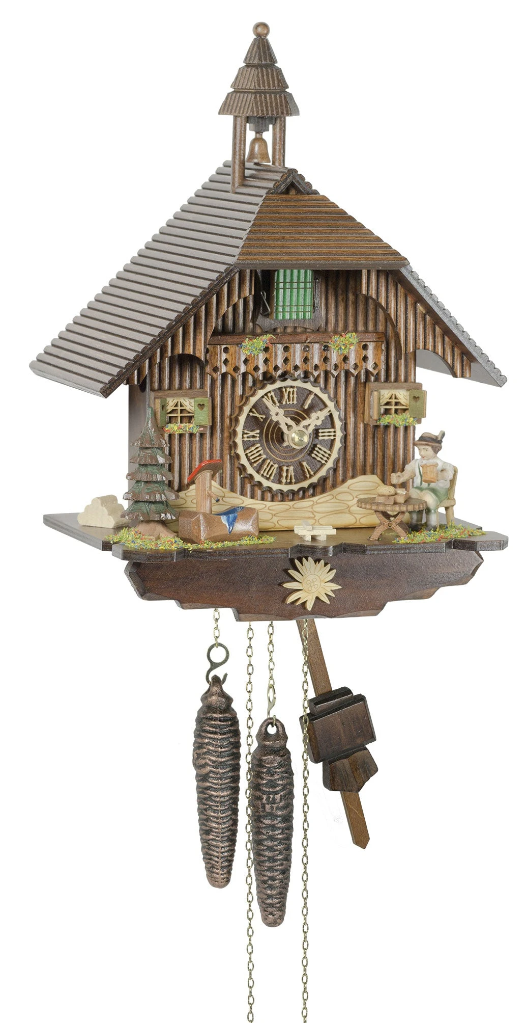 The clock will cuckoo the hour on the hour, and once on the half hour. 6 feet of chain will hang below the clock along with 2 cast pine cone weights. Night Shut-Off Lever.