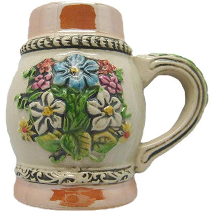 M-445 – Porcelain Beer Stein Magnet with Alpine Flowers.